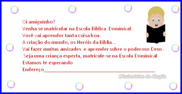 Folhetos e cartões para brindes e promoção da EBD infantil